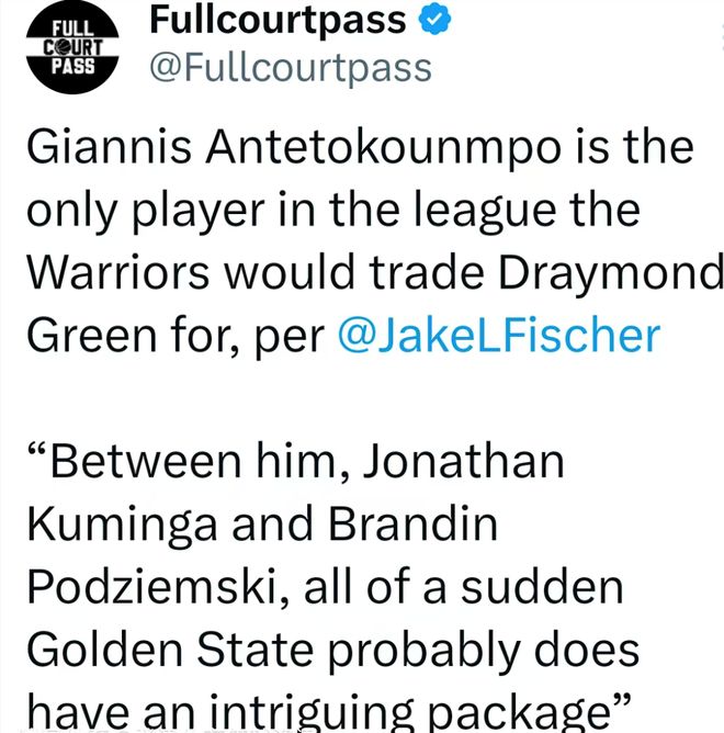 能让勇士老板拉科布、总经理小邓利维改变主意的,只有一种可能——在送出追梦格林的交易中,他们能够得到扬尼斯-阿德托昆博作为回报,这就是他们的底线。拉科布喜欢字母哥不是一天两天,早在2022年夺冠的夏天,他就曾捣鼓过想要组成库里+字母哥的内外双人组,可惜扬尼斯最终选择留守密尔沃基,两人联手的事情无疾而终。此番字母哥似乎下定决心要换个环境,勇士自然不会错过补强的机会,哪怕送出功勋老臣也在所不惜。